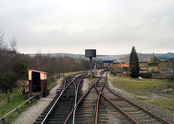 ![]() Looking northeast towards Rawtenstall station in March 2005. By this date the former southbound station platform had been lengthened at its southwestern end. This was to compensate for the fact that it had been shortened at the other end. A bay has also been added.