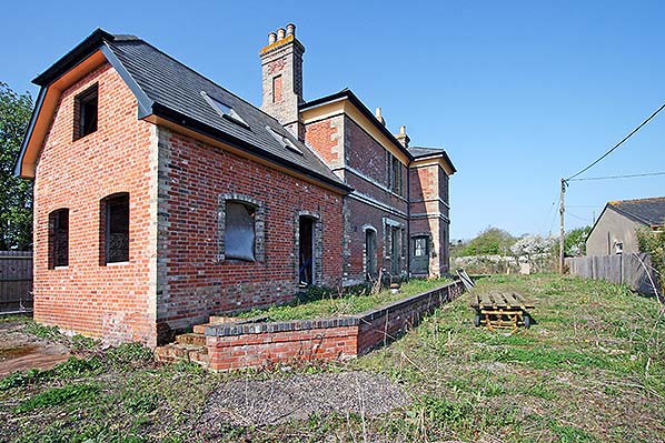 Station Name: RAYDON WOOD![]() Raydon Wood station in October 2018. The extension on the left incorporates parts of the single storey building that originally stood here. A section of low platform has been created from the degraded remains of the original platform.