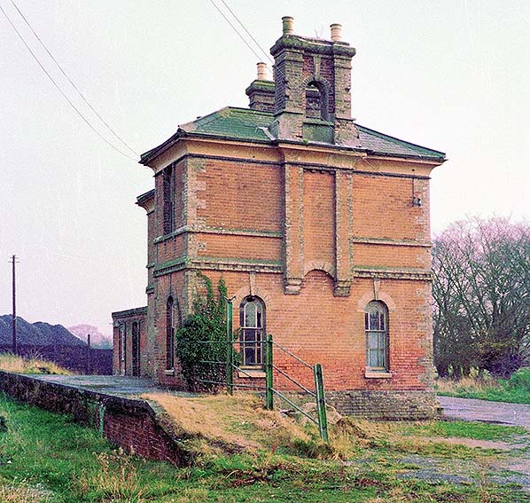 Photo by Alan Young ![]() Raydon Wood station entrance and forecourt in 1985. The cars parked in front of the building suggest Cawoods Coal might have been using it as an office at this time.