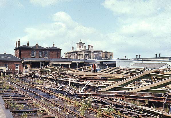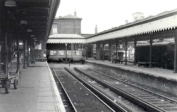 Reading Southern Station in May 1966Photo by Robert W Bridger (from 30937 Photographic Group web site) ![]() The platform canopies were demolished c1966/67.
