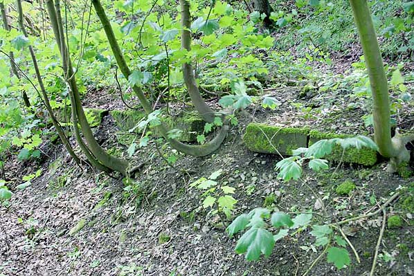Probable remains of southbound platform edge at Red Rock station visible between