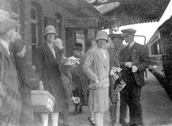 A image of Rhos station taken from a newspaper article in 1929. The event was the departure of Miss Mattie Griffiths from Rhos station on her way to America to marry Mr Daniel Jones. Mr Jones had left Rhos because of the unemployment situation and he had obtained work in the Ford factory at Detroit.