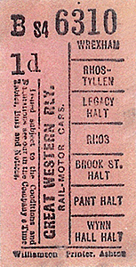 In the early part of the second decade of the twentieth century motor-buses arrived in the Rhos area. They could reach all of the small hamlets and settlements and had a severe impact on railway passenger receipts. On 22 March 1915 the GWR withdrew the rail-motor service from the halts south of Rhos and closed them completely. Services reverted to running between Wrexham General and Rhos.