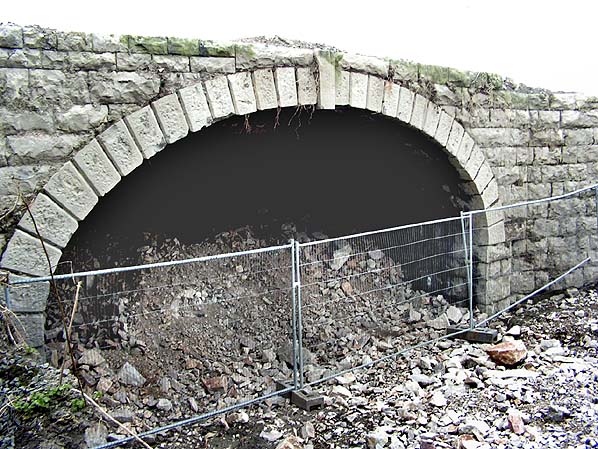 ![]() The road overbridge that was situated at the south end of the station in February 2008. The road is no longer in use. it was replaced by a bypass many years ago.