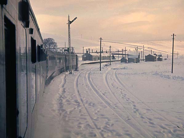 Riccarton Junction station in January 1963. Two days after the Waverley route re-opened after a weeks closure because of snow.
