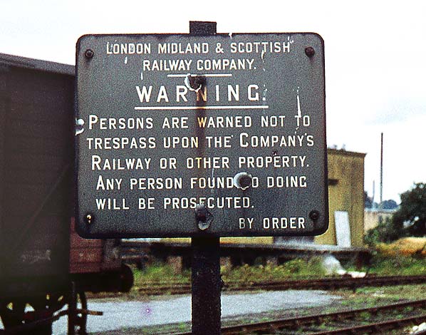 Old LMS warning notice still on display in the Rickmansworth Church Street goods yard in October 1960. Photo by Ron Fisher from his Flickr photostream
