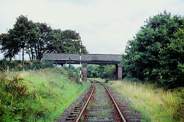 Looking east towards Watford, this is the westerly of two bridges that used to lead to Brightwells Farm in August 1960.This one came led to Tolpits Lane. The fixed distant signal is protecting the junction where the branch line joined the line to Croxley Green. The bridge was demolished in the early 1970s.