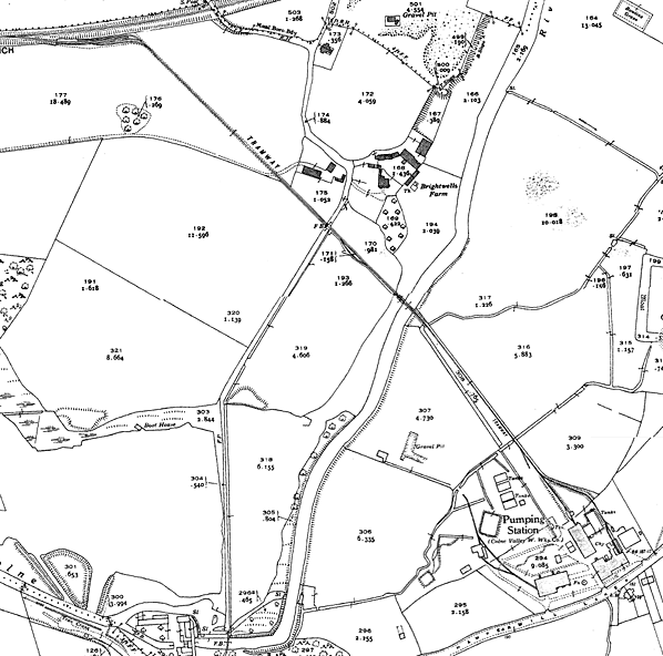 The Colne Valley Water Company opened the Eastbury Pumping Station near Watford in 1873. In 1931/1932, the company opened a narrow gauge railway connecting the pumping station with the LNWR's standard gauge branch line that ran between Watford and Rickmansworth. The 2.0' narrow gauge line ran southeast from a private siding on the LNWR (the remains of which can still be seen) across the fields of Brightwell Farm, crossing the River Colne via a relatively substantial plate girder bridge. The line ended in a yard at the pumping station.