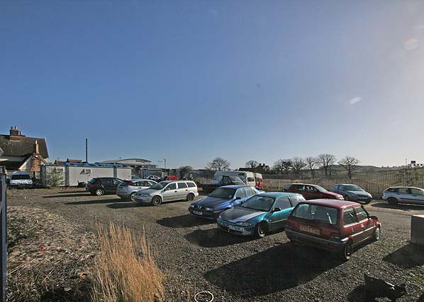 The site of Ridgmont goods yard seen from the end of the up platform in 2014.