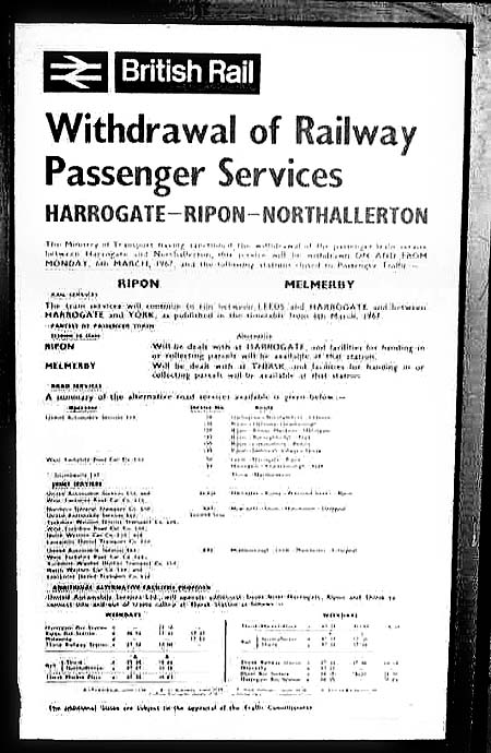Withdrawal of passenger service poster at Ripon station on 4th March 1967,