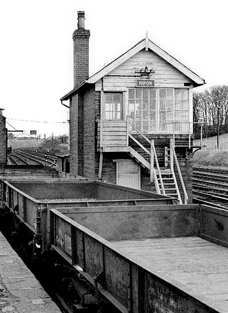 Looking north at Ripon signal box from the cattle dock on 4th March 1967,