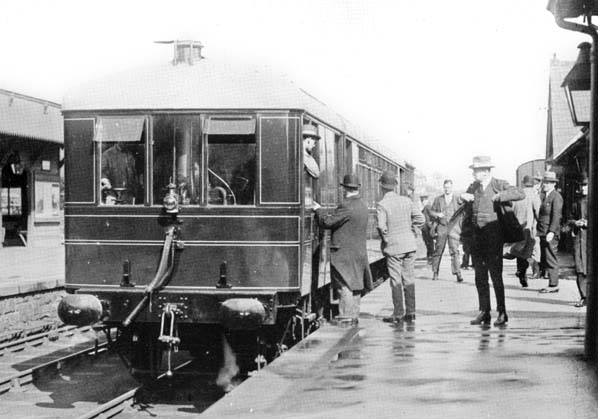 Sentinel railcar on the 'up' platform Robin Hoods Bay Station in April 1927. It had just arrived from Whitby towing a horse box to test its hauling capabilities.