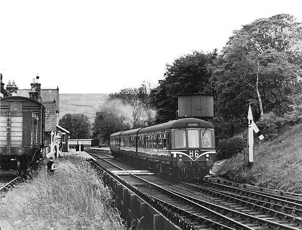 Middlesborough bound DMU leaving Robin Hoods Bay Station in the 1960's. Note the two camping coaches in the background.