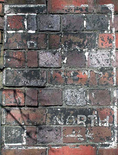 Close-ups of station entrance signs to northbound platform Still partly legible, almost 70 years after closure Photo by Bevan Price