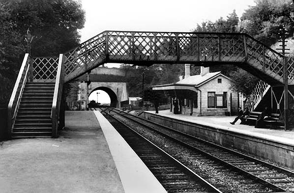 Luckily, during construction of the line the cutting was excavated to a sufficient width to accommodate a second track and platform. The tunnel at the north end was also wide enough for a second track, which was at this time laid through the tunnel as an escape siding from the catch points at the north end of the loop. A new larger standard GWR brick signal box was built on the new platform replacing the earlier box. There was also a standard GWR ‘pagoda’ style waiting shelter and a lattice footbridge spanning the platforms.