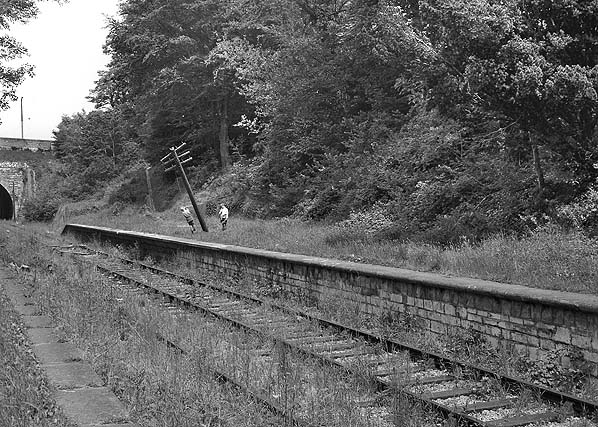![]() Rodwell station looking north from the down platform c1967. Two children seem to be succeeding in pulling down the telegraph pole at the end of the overgrown access ramp!