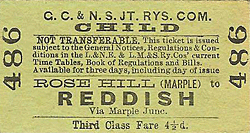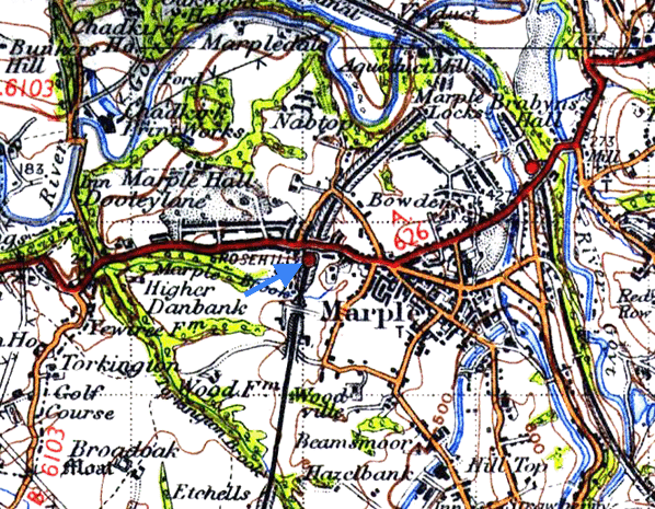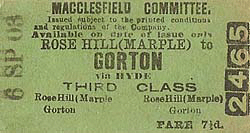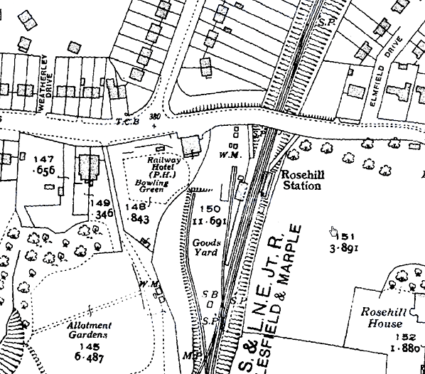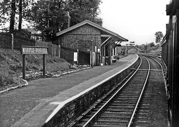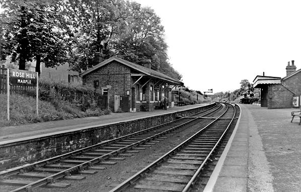 Notes: Rose Hill Marple station was on the 11-mile Macclesfield Committee (MC) railway. The line linked Macclesfield and Marple and was opened as the Macclesfield, Bollington & Marple Railway (MB&MR) on 2 August 1869. The line linked the North Staffordshire Railway (NSR) at Macclesfield to the Manchester, Sheffield & Lincolnshire Railway (MSLR) at Marple. The two companies were involved with the MB&MR scheme as they saw it as a means of creating a main line to Manchester that avoided having to use routes in the ownership of the London & North Western Railway (LNWR) which was the dominant company in the area. Ironically, before the line was opened, relations between the LNWR and the NS had improved resulting in it becoming nothing more than a local route. The MB&MR became a joint line of the MSLR and NS (the MC) in 1871.
