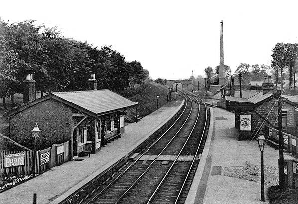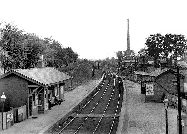 When Rose Hill opened it was in a sparsely populated area to the west of Marple. The station was located on the south side of Stockport Road which passed over the line on a bridge. Originally the line was single-track and the platform was located on the east side of the line. Access was via a sloping path that connected the platform to Stockport Road. The station building was of a style also used at Higher Poynton, High Lane and Bollington stations. It was an austere single-storey brick building whose pitched roof extended forward as a platform canopy, supported by a series of unadorned wooden brackets. Accommodation consisted of four rooms all entered from the platform - a porters’ room, at the north, followed by the station office, with a booking window to the adjoining general waiting room-cum-booking office; a ladies’ room with lavatories completed the facilities, with a brick-built gents’ lavatory adjoining. The only architectural feature of note was a small square bay, with clock, projecting from the station office.
