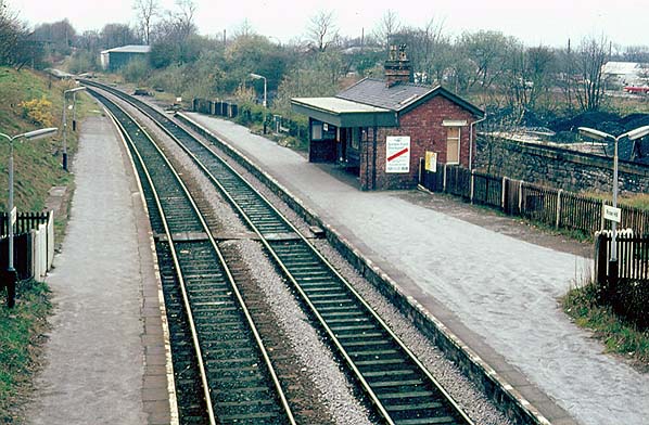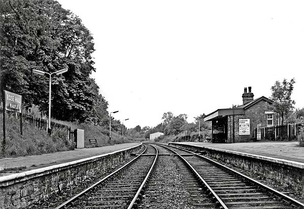 By 1974 the original building on the up platform had been demolished; it was outlived by the similar building at the closed High Lane station, which was soon to be demolished too, so that none of the ‘line style’ buildings have survived. The later down platform building at Rose Hill was retained, but by 1974 its canted awning had been replaced with a flat design. Double track was retained through the station for some years but it had been singled by 1982, serving the former down platform. The up platform has subsequently been removed.
