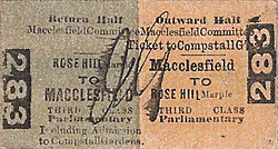 By October 1875 Rose Hill had six trains in each direction Monday-to-Friday, seven on Saturday and four on Sunday. All of the up trains ran to Macclesfield Central. Most of the down trains ran to Manchester London Road, some via Bredbury and others via Guide Bridge.