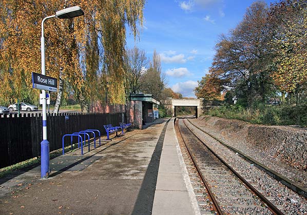 Rose Hill Marple station looking north along the former down platform on 6 November 2010.