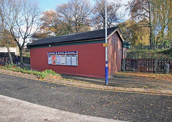 Rose Hill Marple station waiting shelter looking east on 6 November 2010.
