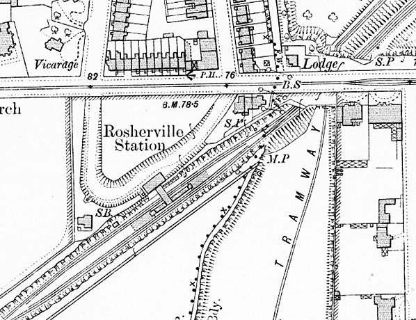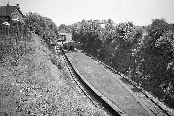 ![]() Looking north east at Rosherville station c1950s seen from the footpath and bridge running south from St. Marks Avenue.