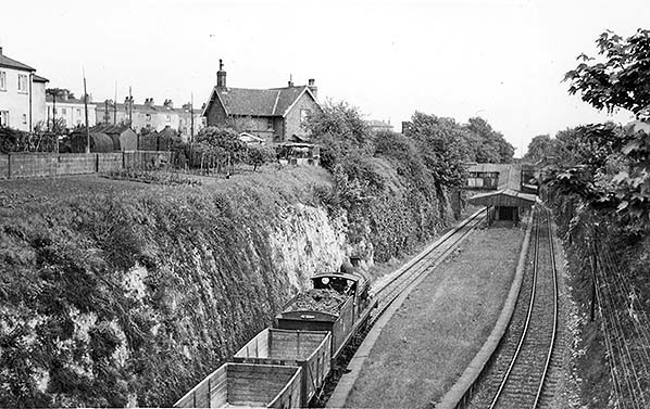The St Marks Avenue footbridge gave a good view of the station. 31295 is seen hauling the 4.46pm service from Gravesend West on 20 September 1952. The passenger service ceased the following year.