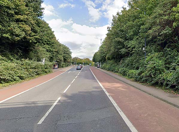 Looking north east along A226 Thames Way at the site of Rosherville Halt in June 2024.