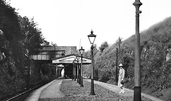 Halt in c.1980. The stationmaster's house now appears derelict with tiles missing from the roof. Taken from the same viewpoint as the