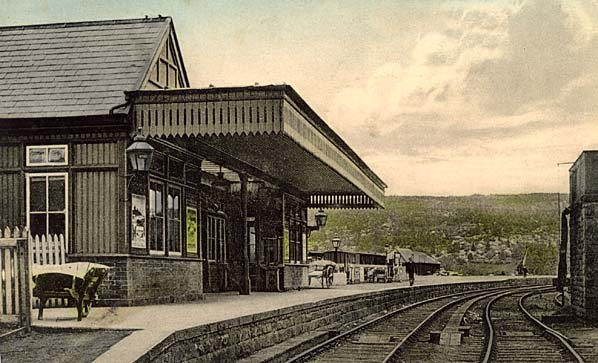 The station consisted of a single platform on the up side with a wooden building comprising a booking office and waiting room. Other buildings at Rothbury included a signal cabin, weight house, stone built water tower and an old coach body providing additional storage.