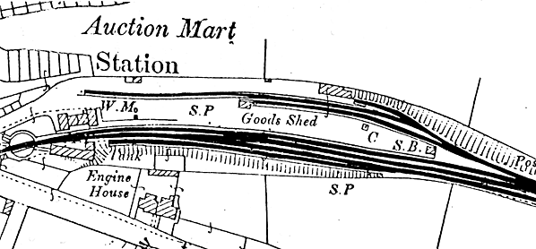 Notes: Rothbury’s track plan consisted of a series of parallel loops with dead end sidings diverging on both sides. The goods yard consisted of three sidings, one serving a small goods shed and one running alongside a cattle dock. The main line ended at a turntable with spurs into a single road brick built engine shed and permanent way sheds. During race days the loading dock was also used for passenger traffic.
