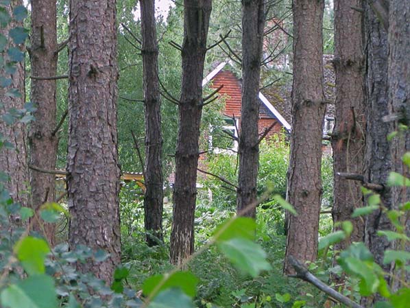 ![]() Station Name: ROUDHAM JUNCTIONPine forest, planted since the railway’s closure, covers much of the land to the north of the line in July 2017. One of the former railway cottages can be glanced through the thick trees.
