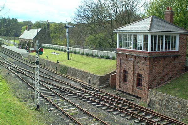 Rebuilt Rowley Station and the former Carr House East signal box which was originally positioned on the approach to Consett station from Leadgate now seen at at Beamish in 1982.