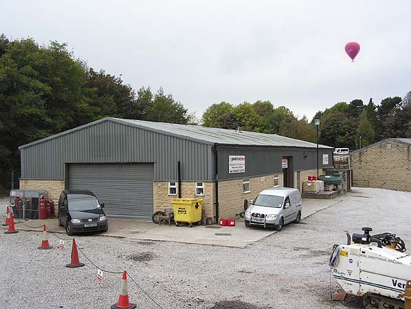 Looking north west at the site of Rowsley 2nd station in October 2009. The white minibus ssen in the gap between the two buildings marks the approximate position of the station building.