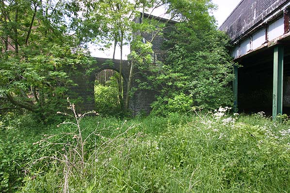 Rugby Central Station looking north in May 2008 - part of the wall that supported the roadside building.