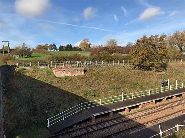 Tthe base of the original road level booking office at Rushcliffe Halt in 2023