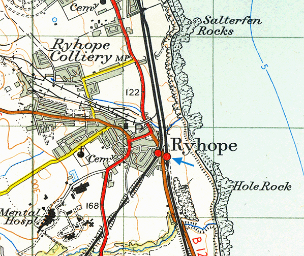 There is additional uncertainty about a first station as distances stated in the Col. Yolland inspection report place the LR Ryhope station 2 miles 20ch north of Seaham Colliery station; if it was a true interchange adjacent to the first NER station it would be closer to 2 miles 25ch. Ryhope East was 2 miles 14ch north of Seaham Colliery, the distance based on the NER line diagram.