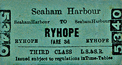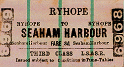 It is likely that the Londonderry station at Ryhope was renamed Ryhope East at the time that the NER acquired it to distinguish it from the NER’s existing Ryhope station. Certainly it carried that name on 3 December 1903 when NER records show that the stationmaster, Mr J O Watson, left his post at Ryhope East to take on this role at Shincliffe. On the same date Ryhope’s stationmaster, Mr R Lumley, left his post, and Mr Thomas Lish was transferred from Leadgate station to Ryhope to take charge of Ryhope East as well. From this time the two Ryhope stations were administratively treated as one; thus in 1911 NER statistics are combined to show a local population of 11,236 booking 138,568 passengers. In 1913 the stations’ goods yard (at this time named Ryhope) handled 1,476 tons of scrap iron and steel and 27 vans of livestock.