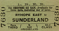 In common with many stations elsewhere in Britain, Ryhope East saw a marked reduction in its departures. In June 1943, in the up direction there were 10 Monday-to-Friday calls, 12 on Saturday and two on Sunday; down train departures numbered 10 on Monday-to-Friday, 12 on Saturday and two on Sunday. The pre-war frequency was not restored after the end of hostilities.