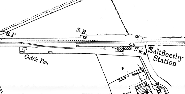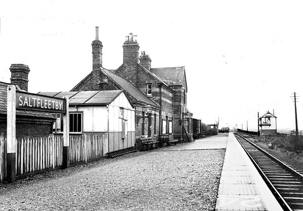 Notes: Saltfleetby was similar to other stations on the northern section of the loop comprising a single platform on the down side of the line with a substantial brick building that incorporated the stationmasters house. A typical GNR signalbox stood on the up side of the line at the west end of the station; this controlled access to the small goods yard.