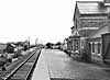 A weighbridge and office stood at the entrance to the yard with cattle pens and a cattle dock at the far end of the yard. There were two short sidings, one serving the cattle dock parallel with the running line, the other to the rear of the platform.