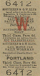 Notes: Sandsfoot Castle Halt was opened in 1932 in an attempt to attract more tourists to the line which was already suffering badly from competition from buses. Sandsfoot Castle is one of Henry VIII's Device Forts, also known as Henrician Castles, built around 1541 to the south of Weymouth, opposite its contemporary Portland Castle. Together these two forts put the whole of Portland harbour and the roads within range of their artillery, thus protecting shipping from foreign raiders and preventing an invading landing force from forming up offshore, although the castle was always vulnerable to attack from a landward direction. Most of the castle has fallen into the sea, but some ruins remain and are one of the region’s tourist attractions.