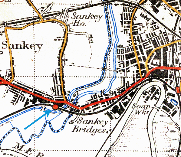 the Sankey Canal (1757) by way of a swing bridge which remained