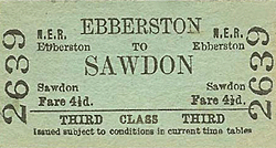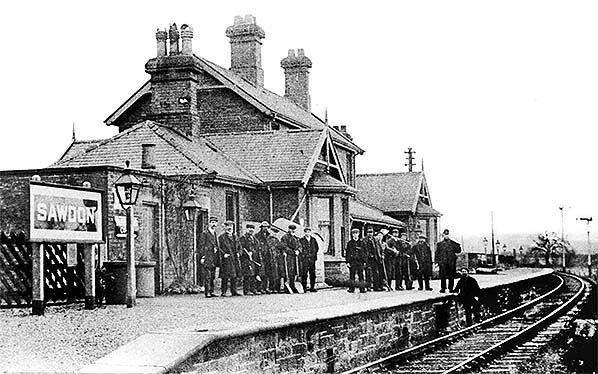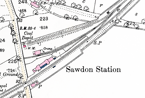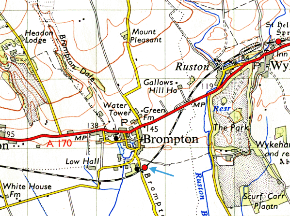 Notes: Sawdon served the village of Brompton-by-Sawdon, it has been suggested that the station was so named to avoid confusion with Brompton near Northallerton, also in North Yorkshire. The map below shows the village as Brompton but Brompron-by-Sawdon (also the Parish name) is now the preferred name. Sawdon goods yard was sited on the down side of the line behind the station and had three sidings, it was the only station on the line to have an end dock, being able to handle furniture vans, motor cars and carriages. Also provided was a one ton crane, weighbridge, goods warehouse and cattle dock. The station got quite busy here during the Second World War, when the 11th armoured division took over a Cavalry Unit at nearby Wydale Hall. They also occupied Brompton Hall and armoured vehicles, guns and other equipment were carried by the railway.