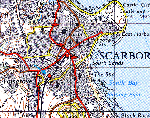 ![]() The surviving entrance to Scarborough Londesborough Road station in July 1999.