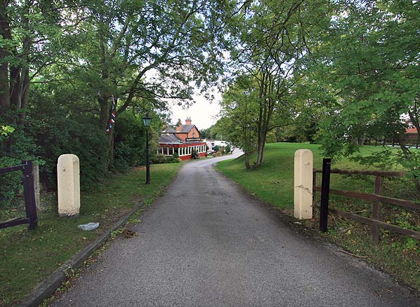 Railway gate posts at the end of the Scholes station approach road in September 2010.