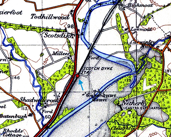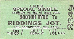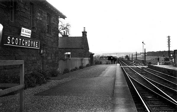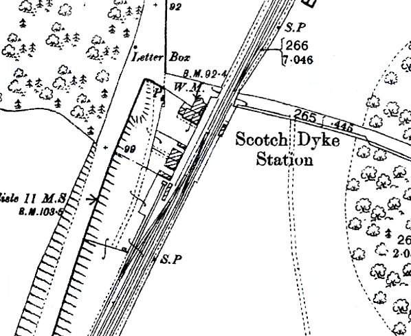 When the station opened it was called Scotsdyke, being named after a wooded 16th century fortification that follows the border at this point; it was quickly renamed Scotch Dyke (although rendered as a single word on the nameboards).
