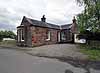 There was a simple stone waiting shelter on the up platform. A brick signal box stood to the south of the up platform; this controlled the level crossing and the small goods yard opposite. The goods yard comprised a loop with a short siding serving a dock to the rear of the cottages.