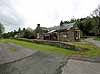 The station had two low sandstone platforms. The main L-shaped station building was of stone and comprised a single-storey stationmaster's house end-on to the platform, with the booking office and waiting room facing the platform; a canopy in the form of a verandah fronted the booking office. Above the canopy the inscription 'Speed and Comfort by Rail' can still be seen. Beyond the building two railway cottages backed onto the platform.